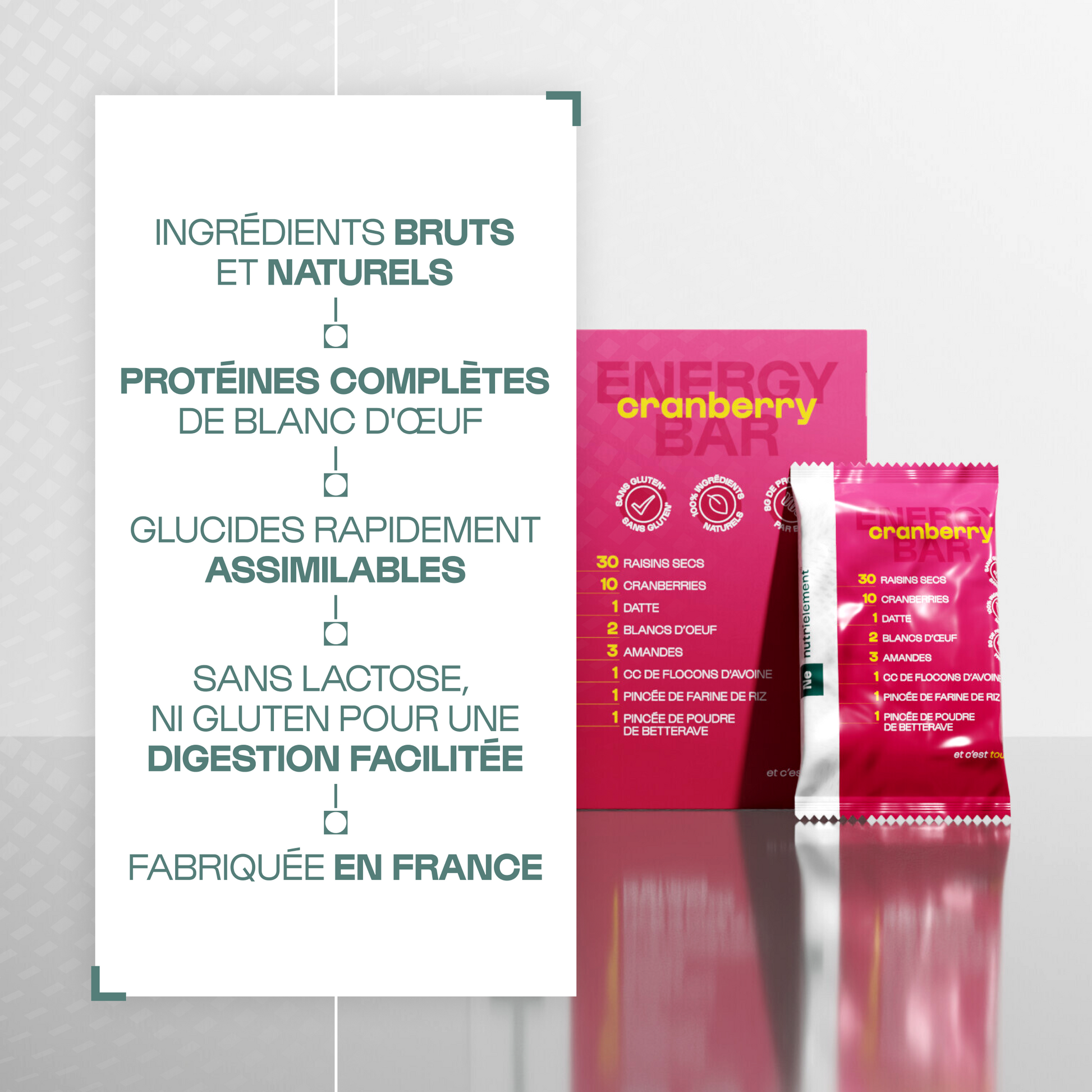 – Parce qu’elles sont sans gluten, sans lactose, fabriquées en France et parfaitement adaptées à une collation sportive ou gourmande.
