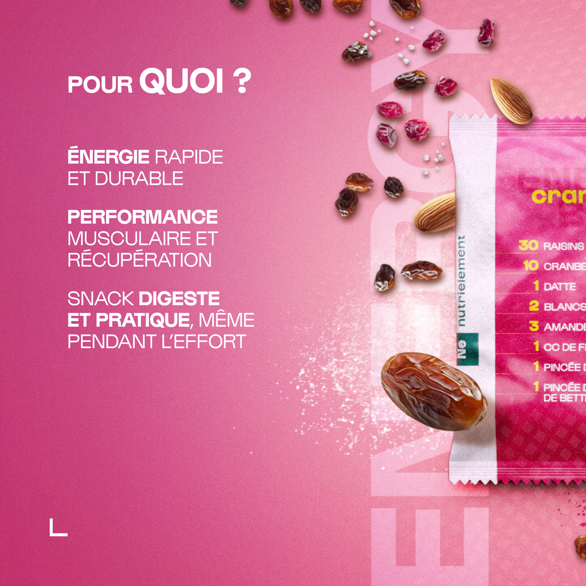 – Aux sportifs de tous niveaux, qui recherchent un snack pratique pour refaire le plein de glucides avant, pendant ou après l’entraînement ;