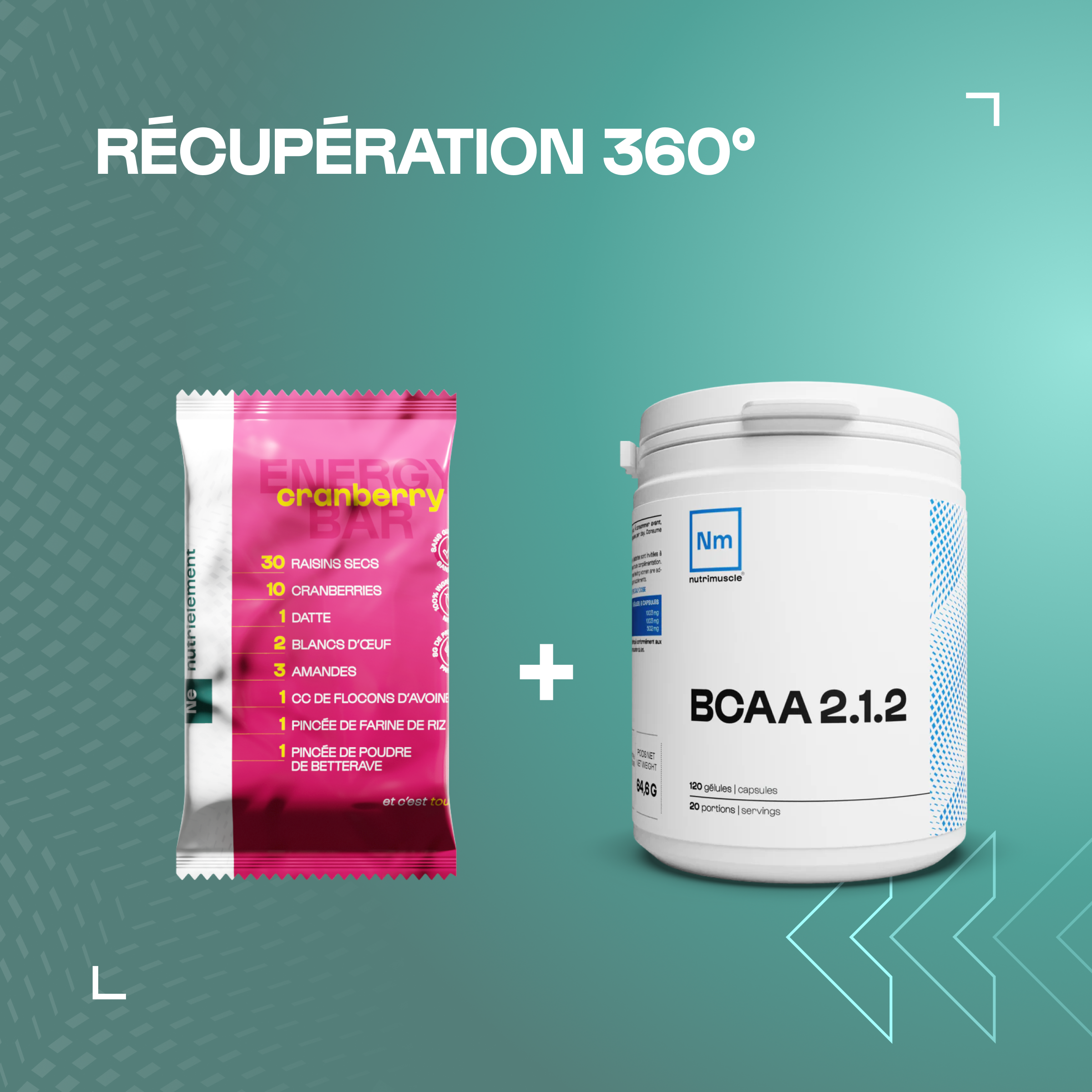 Association entre compléments alimentairesVous pouvez associer les barres énergie avec tous les compléments Nutrimuscle.