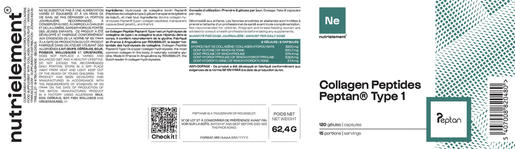 Le collagène de type 1 est une protéine retrouvée naturellement dans le corps au niveau de la peau, des tendons et des ligaments. Elle a un rôle de structure et d'élasticité.